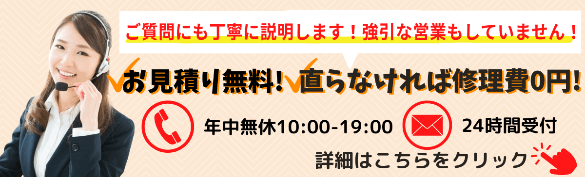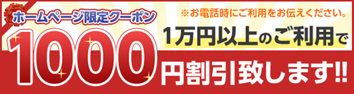 更に今だけ、修理費が1万円以上の掛かった場合には1,000円割引きをおこなっています。